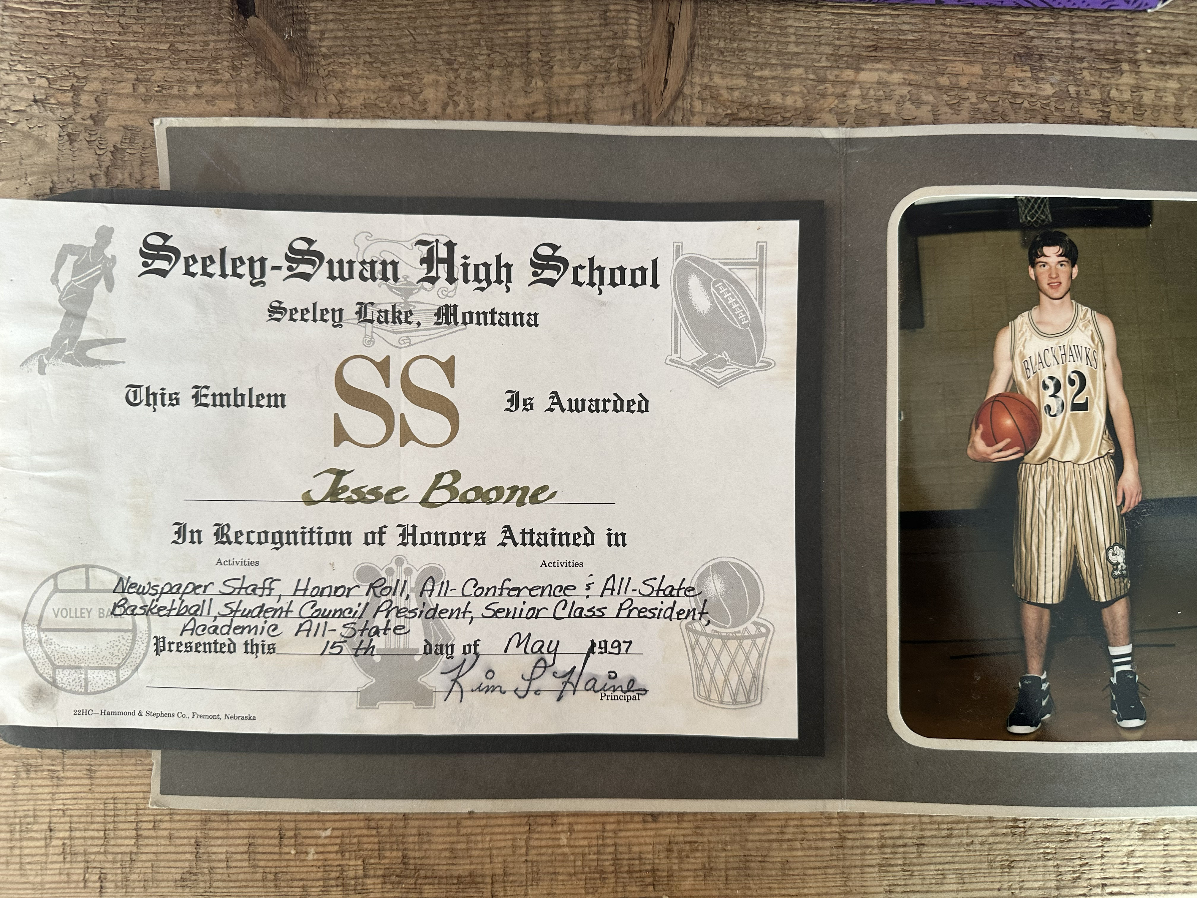 Wearing #32 for the Seeley-Swan Blackhawks, Jesse Boone became one of the most accomplished players in the program's history. As a senior center, he earned All-Conference, All-State, and Academic All-State honors while also serving as Student Council President and Senior Class President.