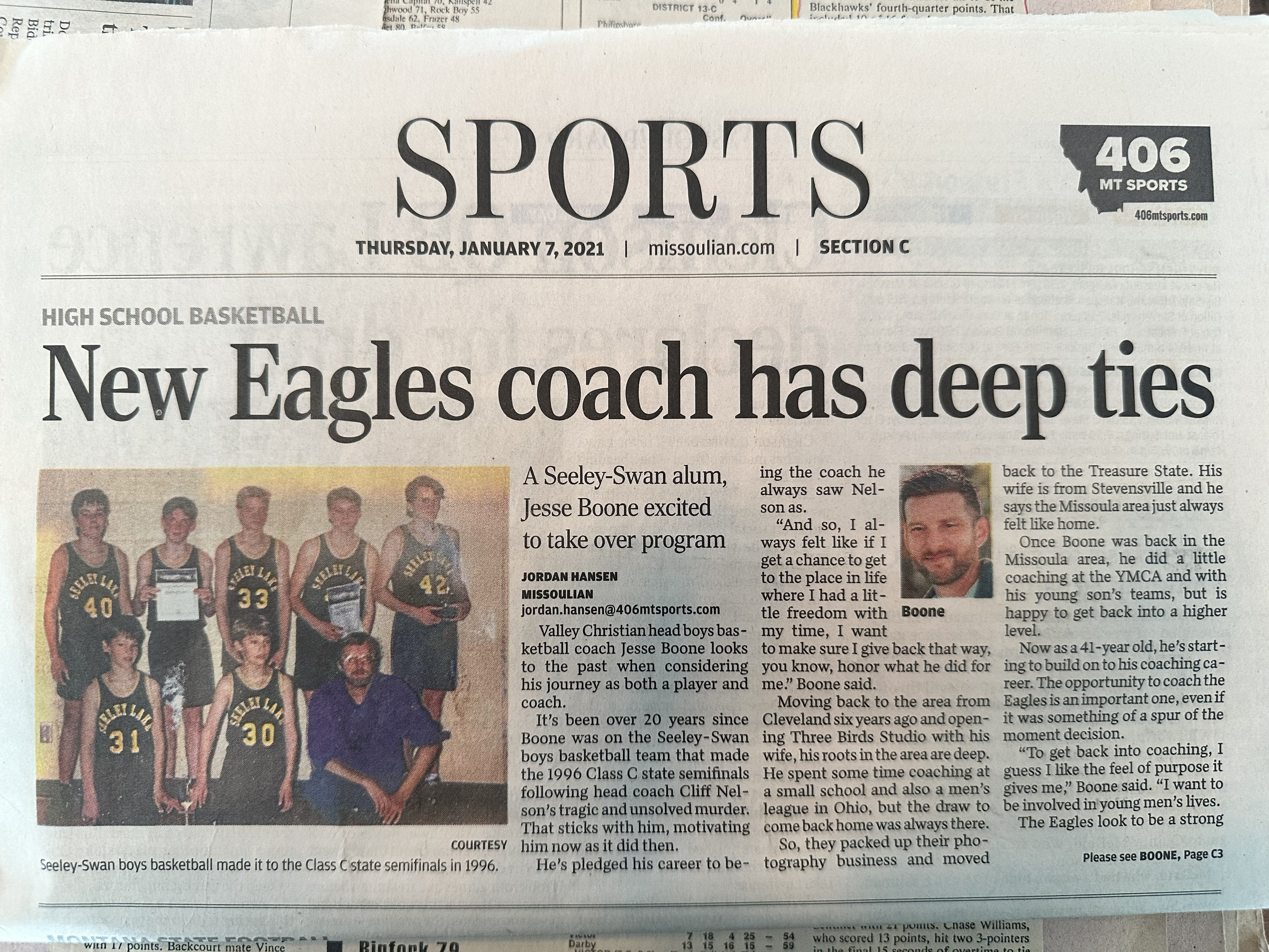 More than 20 years after his playing days at Seeley-Swan, Jesse Boone returned to the hardwood as head coach of the Valley Christian Eagles. A late hire who discovered the opening online, Boone brought his Montana roots and competitive fire to a program hungry for a turnaround.